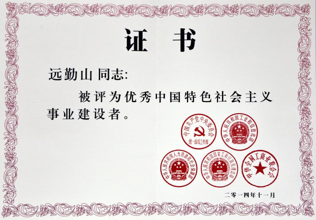 2014年大運(yùn)集團(tuán)董事長(zhǎng)遠(yuǎn)勤山榮獲“優(yōu)秀中國(guó)特色社會(huì)主義建設(shè)者”稱號(hào)