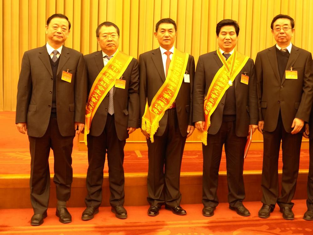 山西省工商聯(lián)主席李武章,中共山西省委統(tǒng)戰(zhàn)部副部長(zhǎng)、省工商聯(lián)黨組書(shū)記、副主席楊臨生和山西省三位獲獎(jiǎng)?wù)咂髽I(yè)家:大運(yùn)集團(tuán)董事長(zhǎng)遠(yuǎn)勤山、長(zhǎng)治市南燁實(shí)業(yè)集團(tuán)董事長(zhǎng)李建明、大同市華岳建設(shè)集團(tuán)董事長(zhǎng)昝寶石合影(照片從右到左)