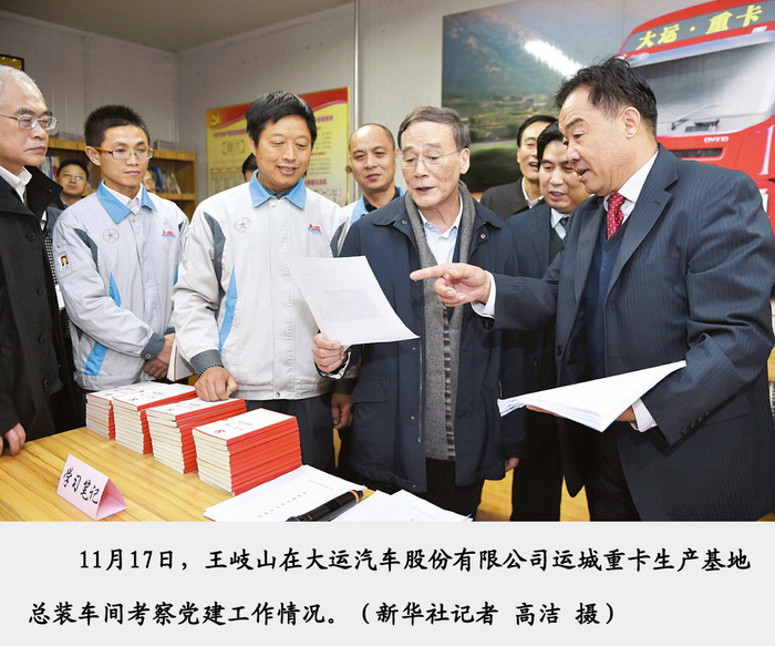 2016年11月17日下午,中共中央政治局常委、中央紀(jì)委書(shū)記王岐山一行蒞臨大運(yùn)汽車股份有限公司運(yùn)城重卡生產(chǎn)基地視察,深入了解大運(yùn)公司生產(chǎn)經(jīng)營(yíng)及黨建情況。
