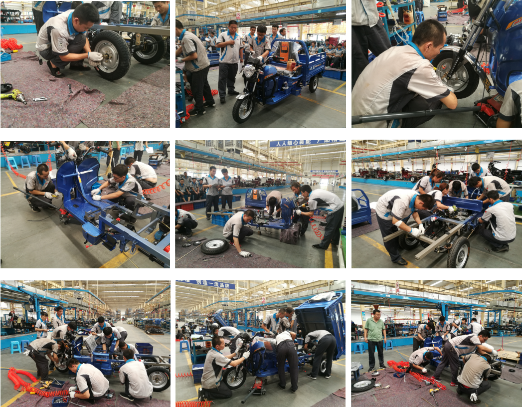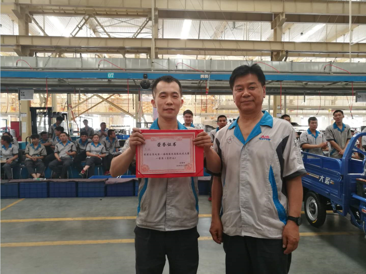 為豐富員工的業余生活,充分調動員工的積極性和創造性,并在公司內部營造“比、學、趕、幫、超”的良好氛圍,總裝處率先垂范,積極組織舉辦運城大運機車有限公司首屆拆裝車技能比武大賽。比賽一共分為四個組,總裝處A、B兩條生產線各出兩個組,每組9個人。比賽分為拆車、裝車兩個部分,每完成一個部分,全組成員列隊站好,由專業裁判組進行檢驗打分。