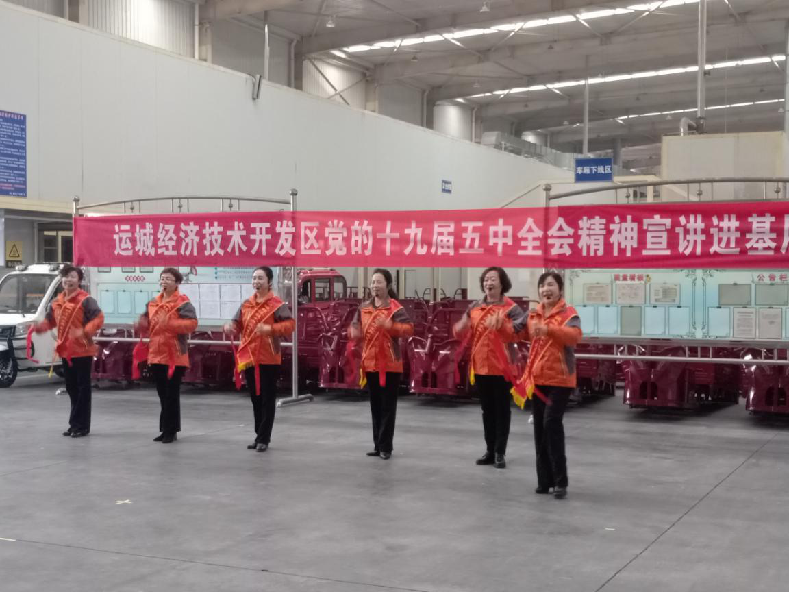 12月11日,運城經濟技術開發區總工會來到大運機車有限公司,開展黨的十九屆五中全會精神宣講。為引領廣大職工群眾聽黨話、跟黨走,進一步豐富職工的文化生活,此次通過快板、合唱、現場提問等大家喜聞樂見的方式開展。
